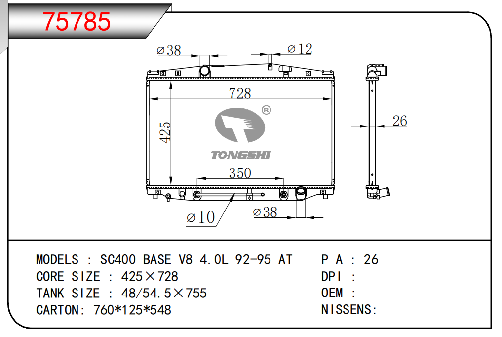 適用于寶馬 E30 320 i 82-93 AT散熱器OEM:1723 825/1719 261