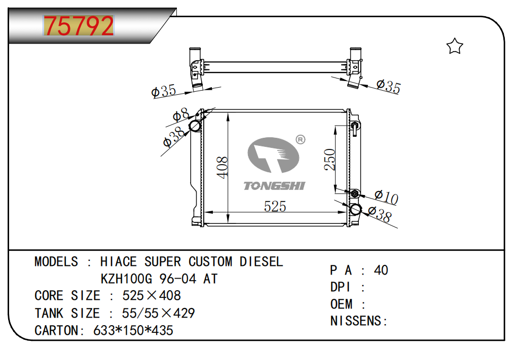 適用于奇瑞瑞虎(新款) MT散熱器 OEM : F1301000B1