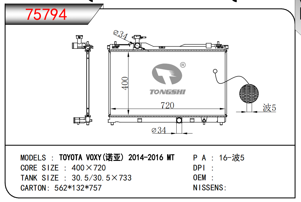 適用于奇瑞瑞虎(新款) MT散熱器 OEM : F1301000B1
