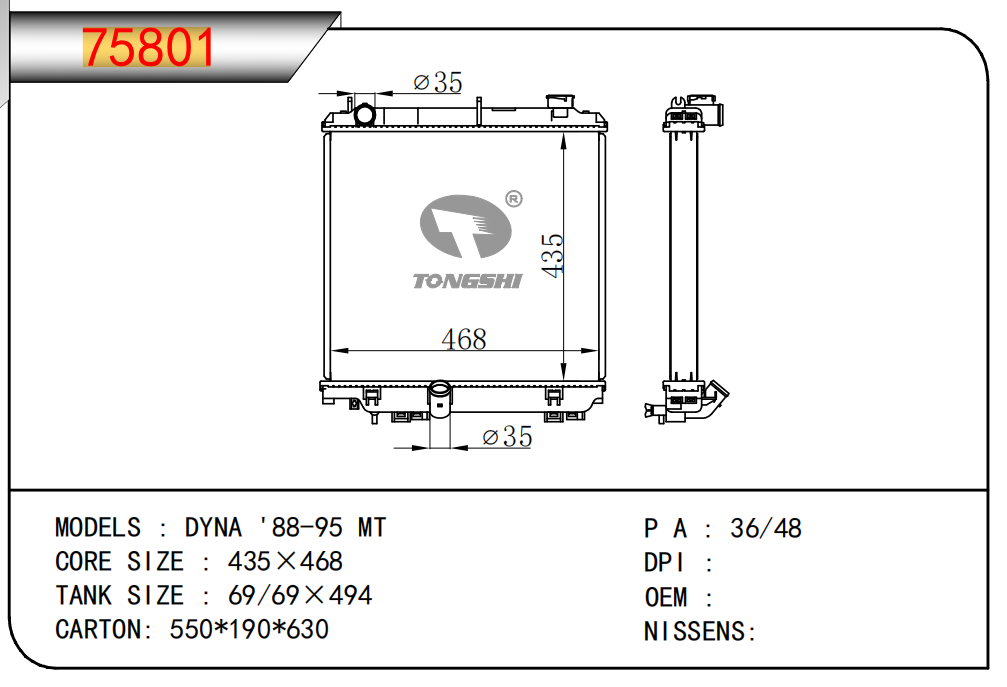 適用于奇瑞瑞虎(新款) MT散熱器 OEM : F1301000B1