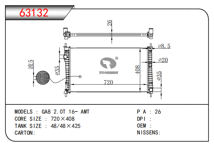 適用于奇瑞瑞虎(新款) MT散熱器 OEM : F1301000B1