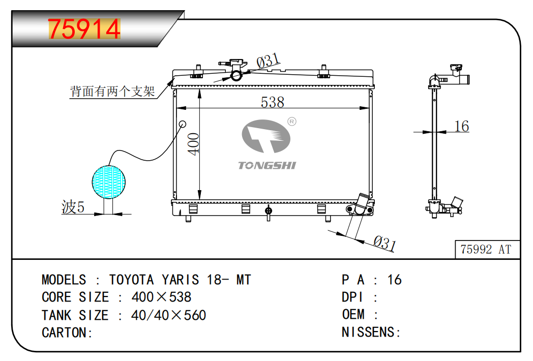 適用于奇瑞瑞虎(新款)?MT散熱器