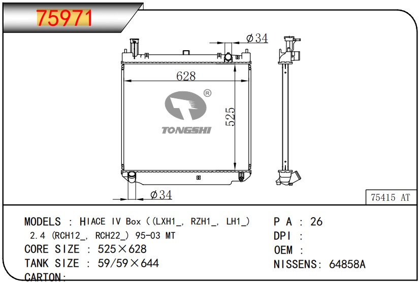 適用于奇瑞瑞虎(新款) MT散熱器 OEM : F1301000B1