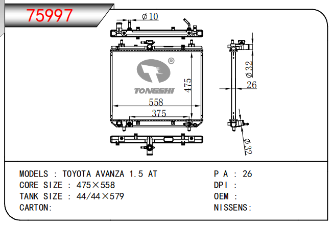 適用于奇瑞瑞虎(新款) MT散熱器 OEM : F1301000B1