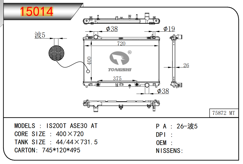 適用于奇瑞瑞虎(新款) MT散熱器 OEM : F1301000B1