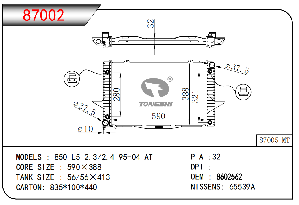 適用于奇瑞瑞虎(新款) MT散熱器 OEM : F1301000B1