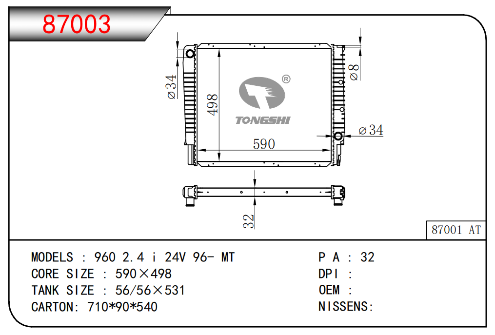 適用于寶馬 E30 320 i 82-93 AT散熱器OEM:1723 825/1719 261