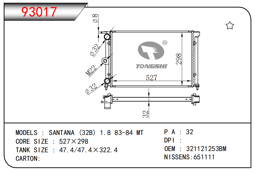 適用于寶馬 E30 320 i 82-93 AT散熱器OEM:1723 825/1719 261