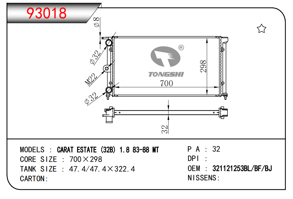 適用于寶馬 E30 320 i 82-93 AT散熱器OEM:1723 825/1719 261