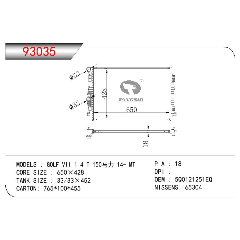 適用于奇瑞瑞虎(新款) MT散熱器 OEM : F1301000B1