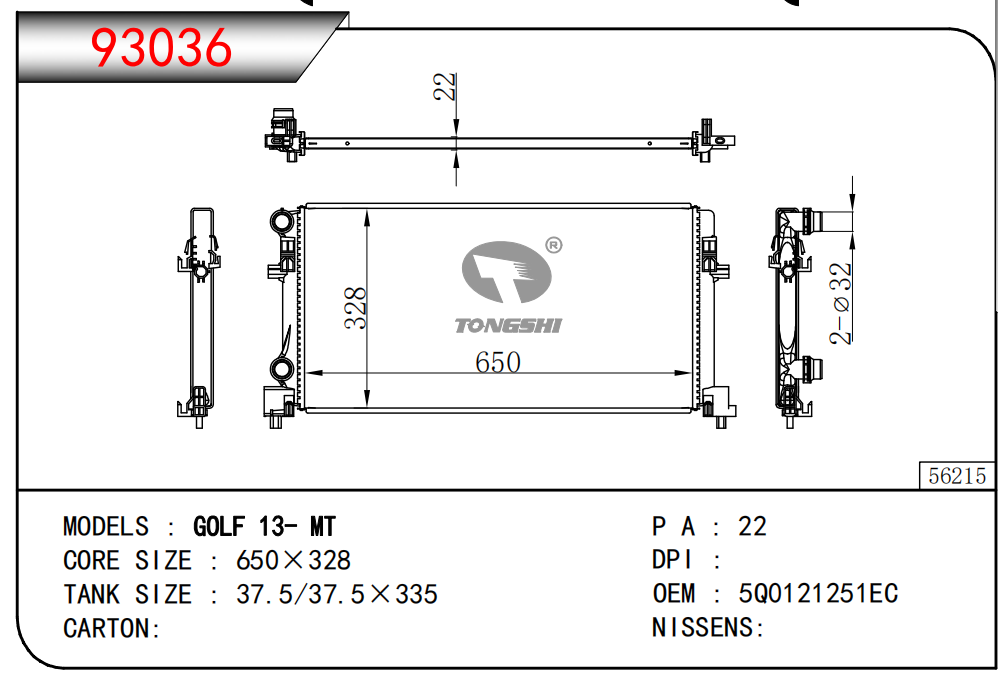 適用于奇瑞瑞虎(新款) MT散熱器 OEM : F1301000B1
