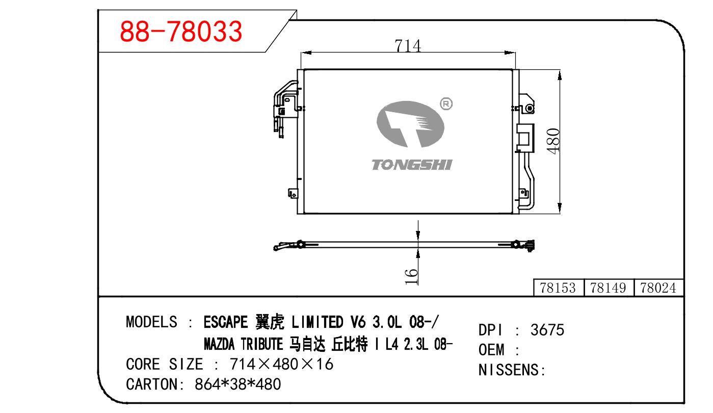 適用于奇瑞瑞虎(新款) MT散熱器 OEM : F1301000B1