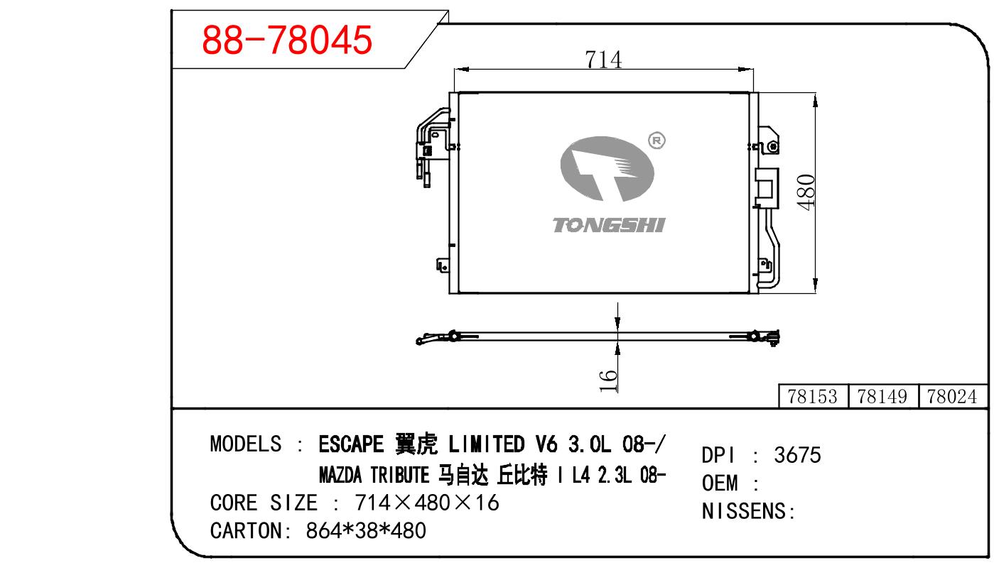 適用于奇瑞瑞虎(新款) MT散熱器 OEM : F1301000B1