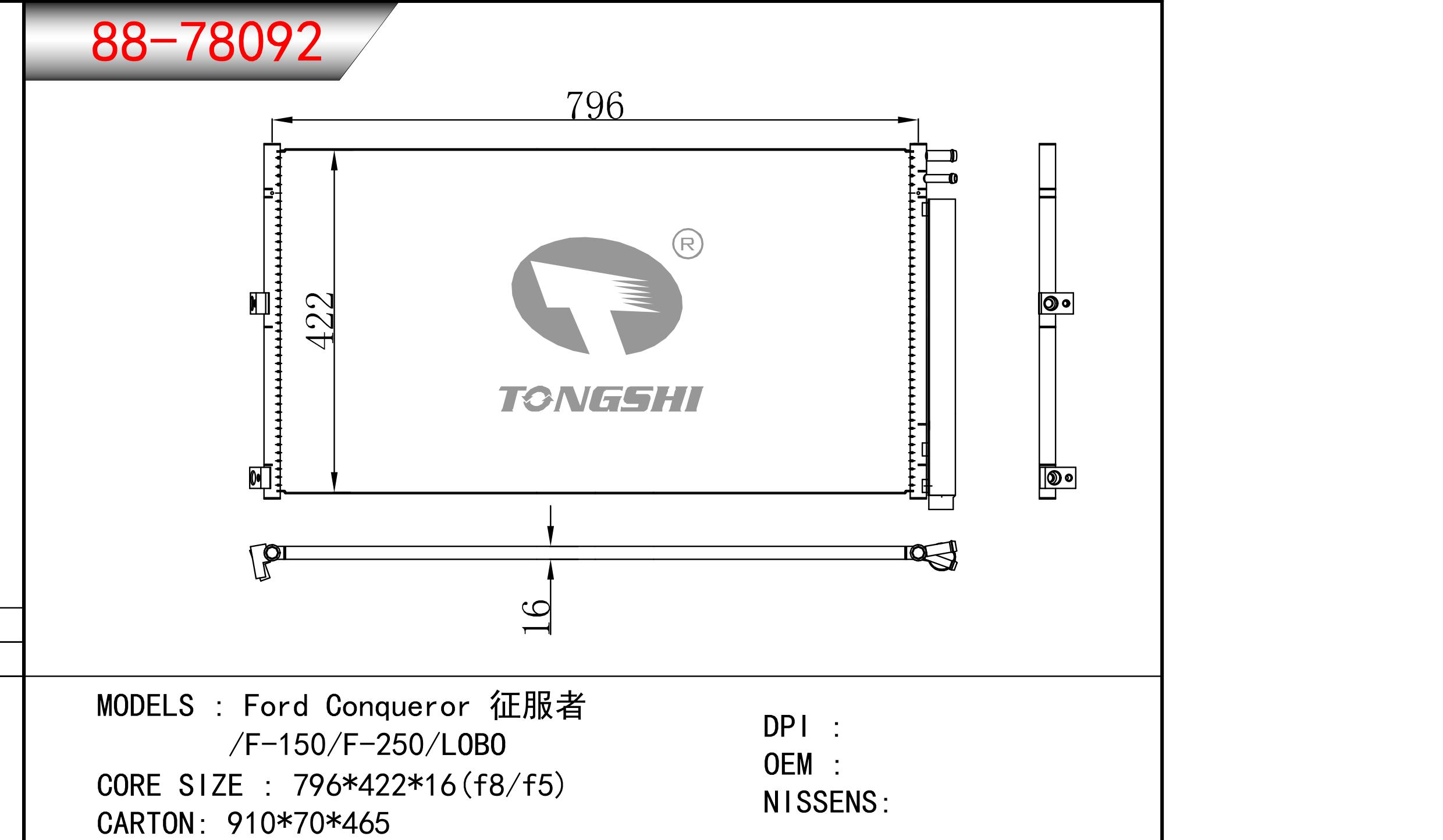 適用于奇瑞瑞虎(新款) MT散熱器 OEM : F1301000B1