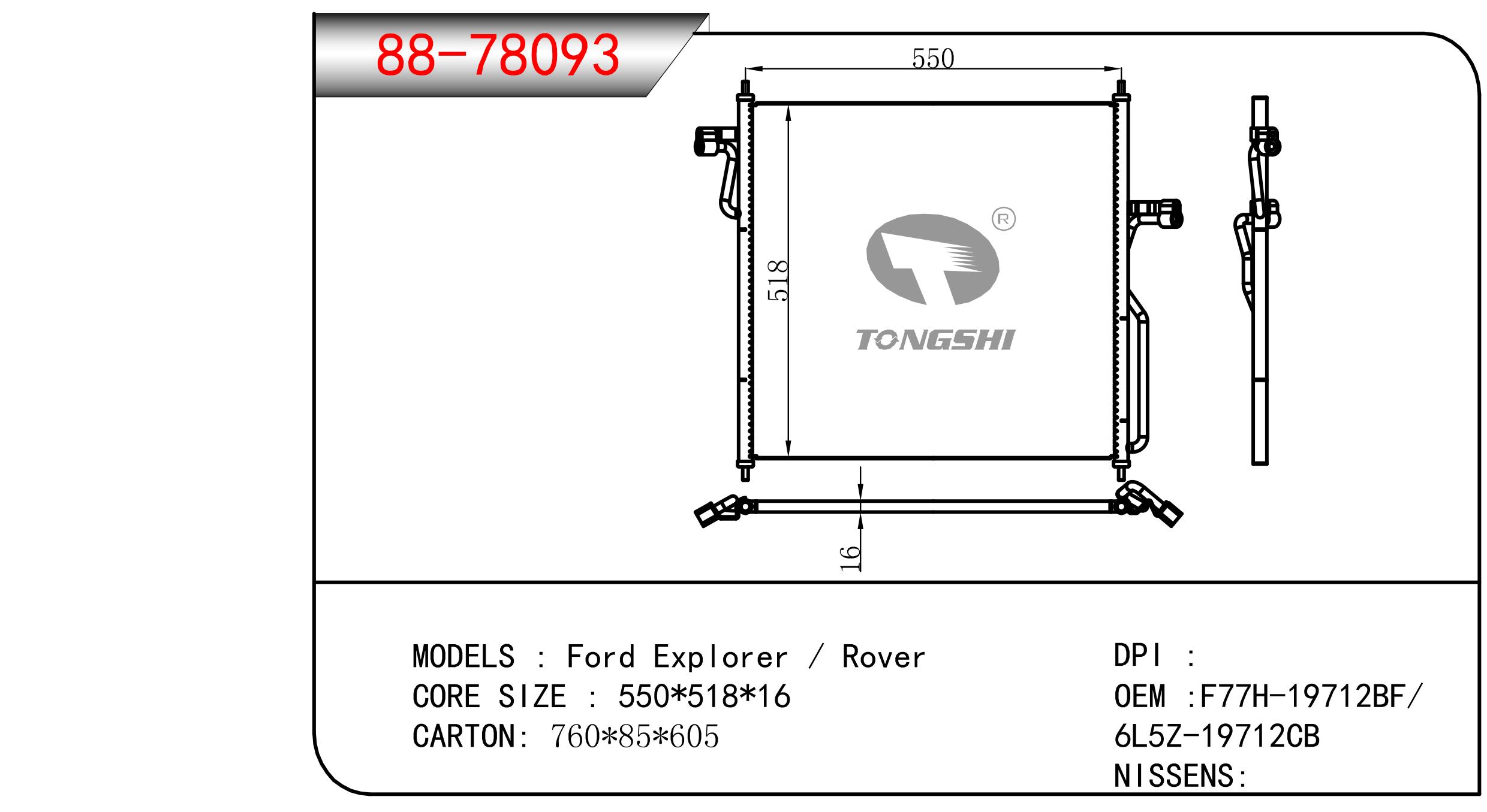 適用于奇瑞瑞虎(新款) MT散熱器 OEM : F1301000B1