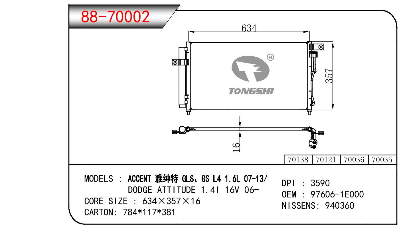 適用于奇瑞瑞虎(新款) MT散熱器 OEM : F1301000B1