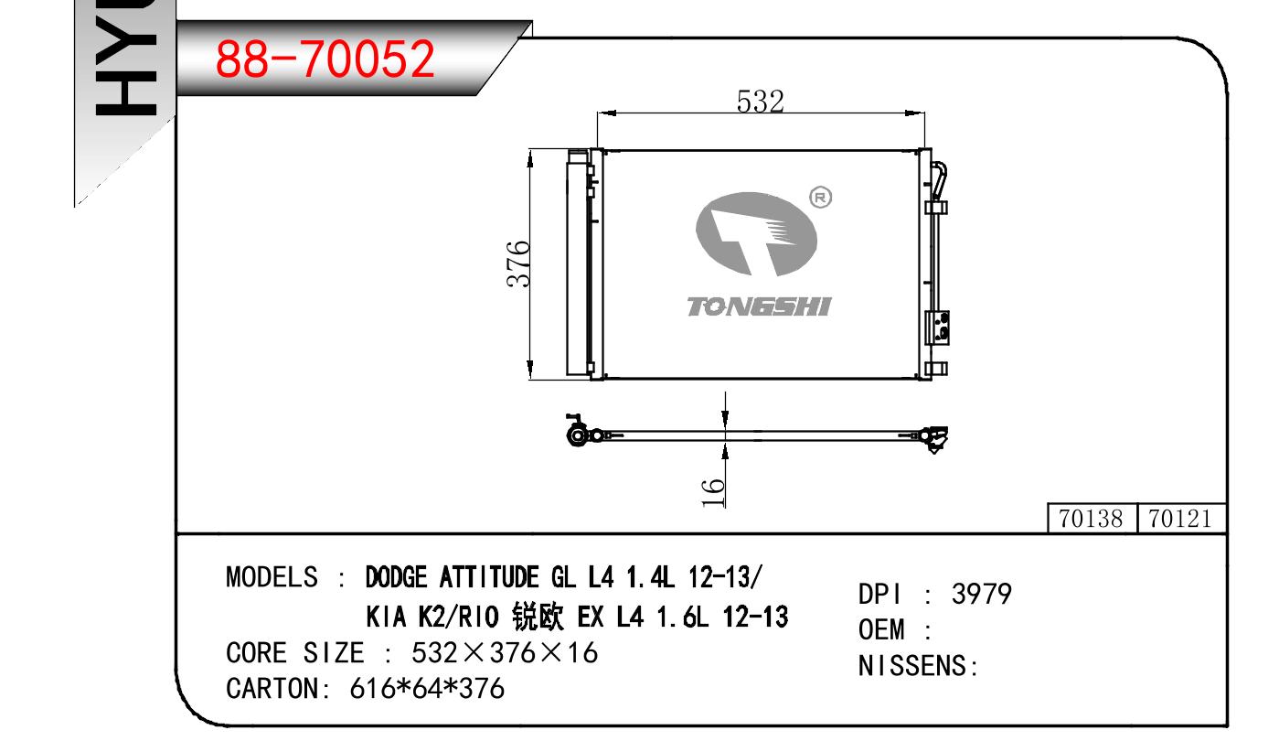 適用于奇瑞瑞虎(新款) MT散熱器 OEM : F1301000B1