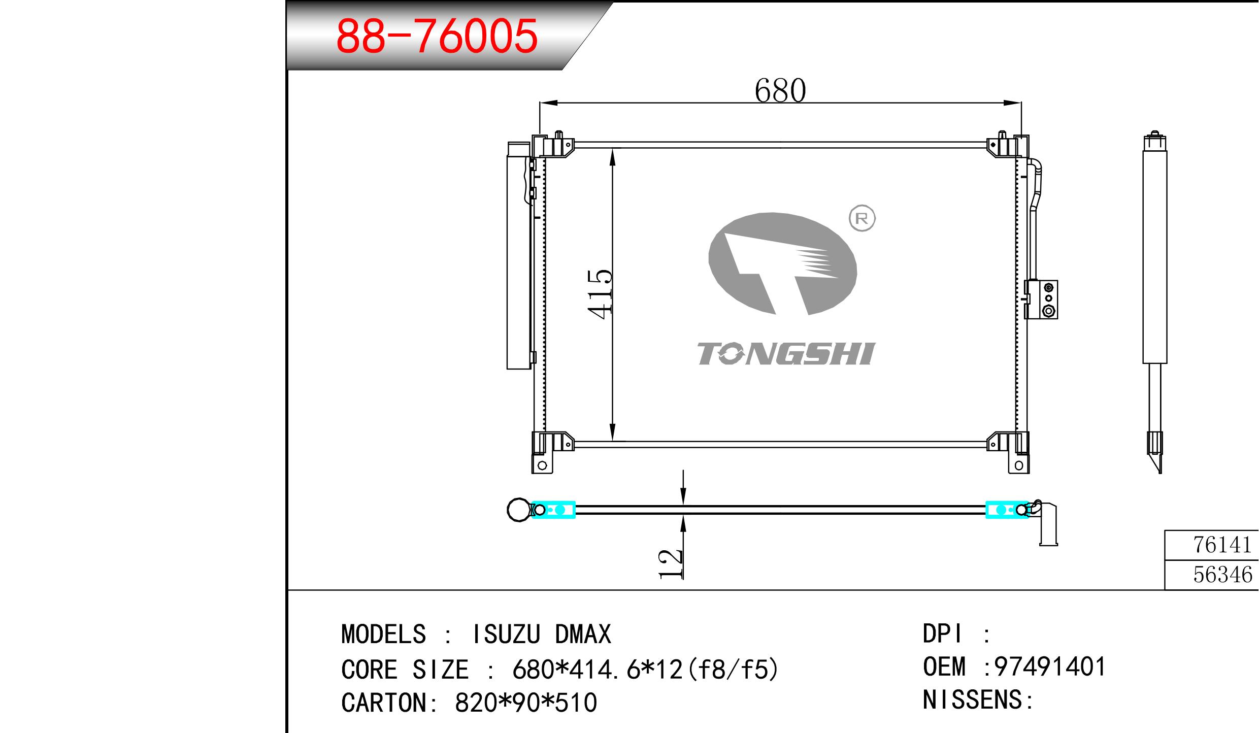 適用于奇瑞瑞虎(新款) MT散熱器 OEM : F1301000B1