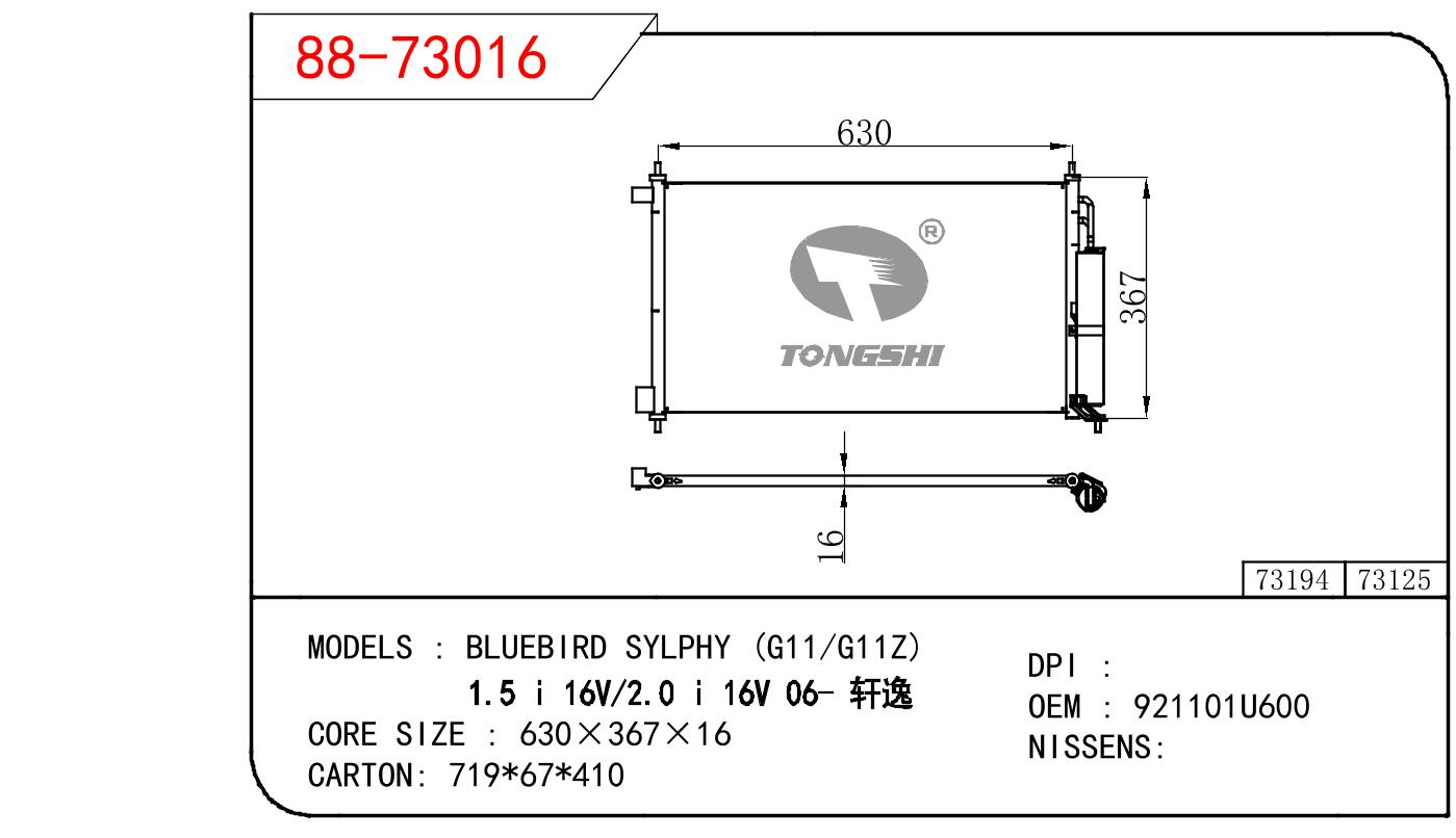 適用于奇瑞瑞虎(新款) MT散熱器 OEM : F1301000B1