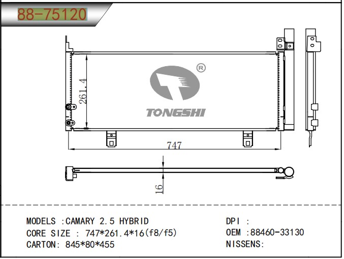 適用于奇瑞瑞虎(新款) MT散熱器 OEM : F1301000B1