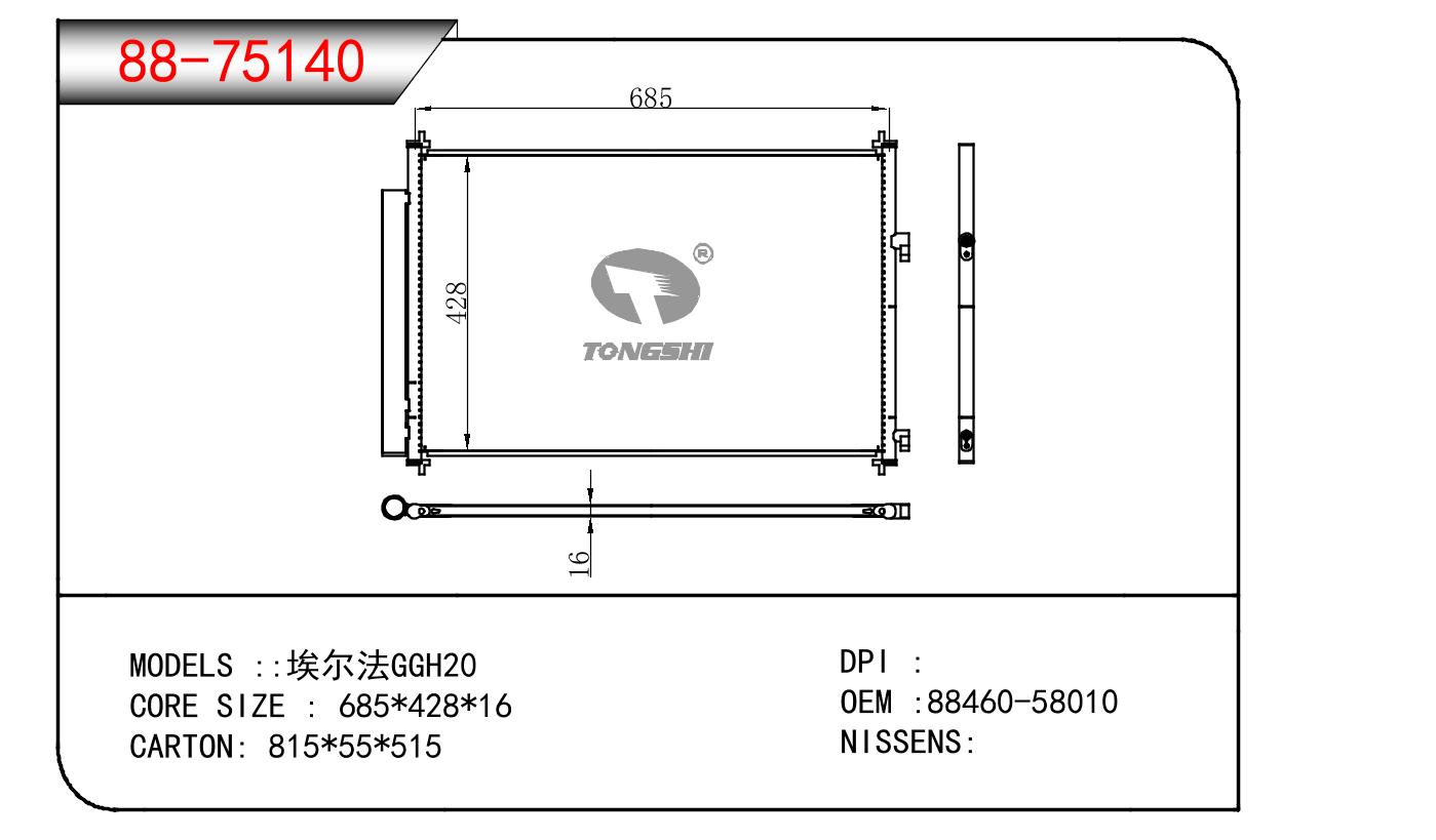 適用于奇瑞瑞虎(新款) MT散熱器 OEM : F1301000B1