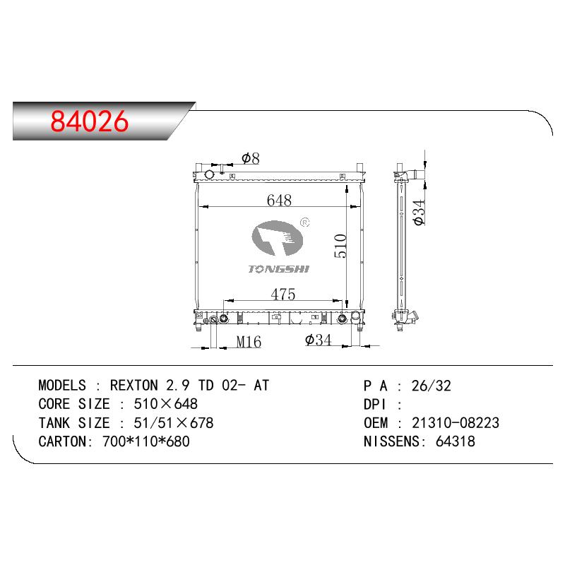 適用于奇瑞瑞虎(新款) MT散熱器 OEM : F1301000B1