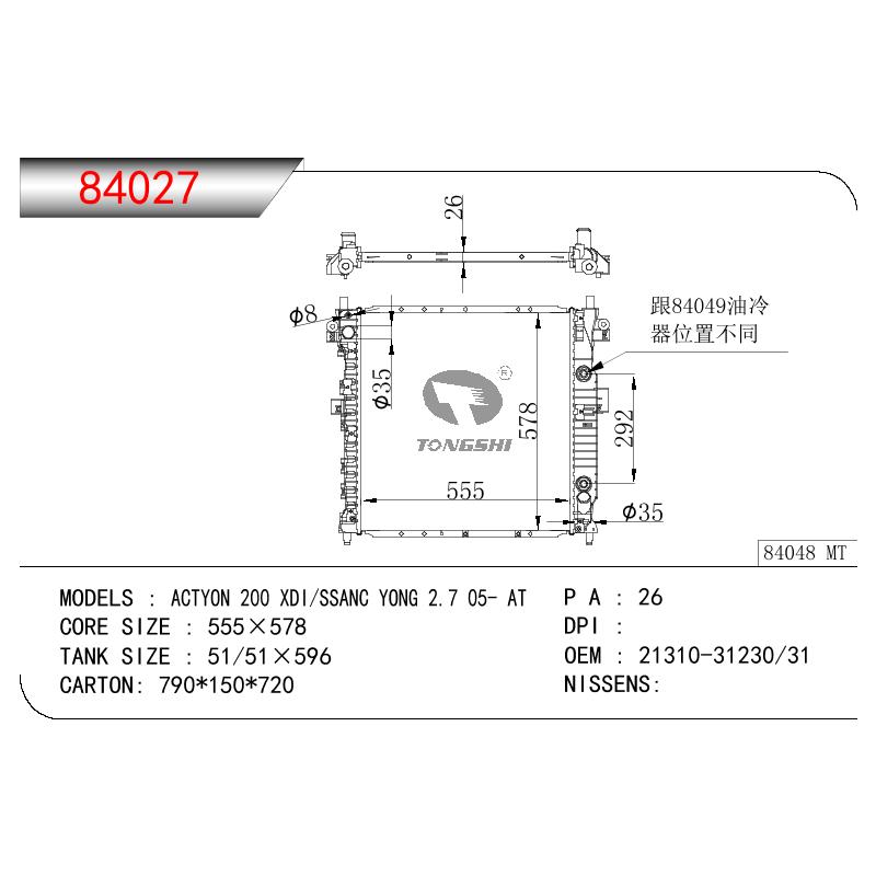 適用于奇瑞瑞虎(新款) MT散熱器 OEM : F1301000B1