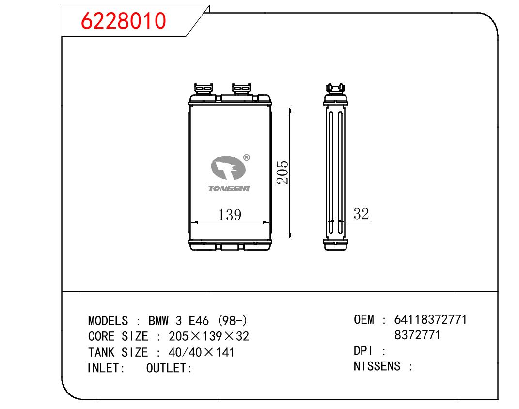 適用于寶馬 E30 320 i 82-93 AT散熱器OEM:1723 825/1719 261
