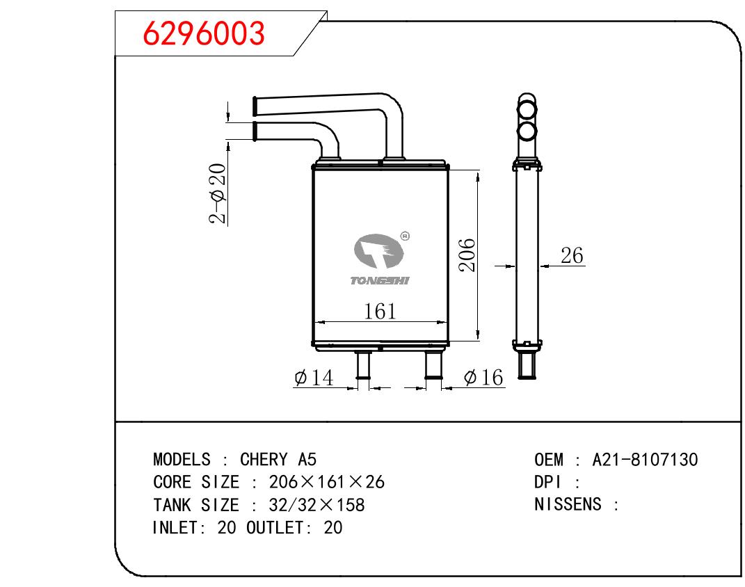 適用于奇瑞瑞虎(新款) MT散熱器 OEM : F1301000B1