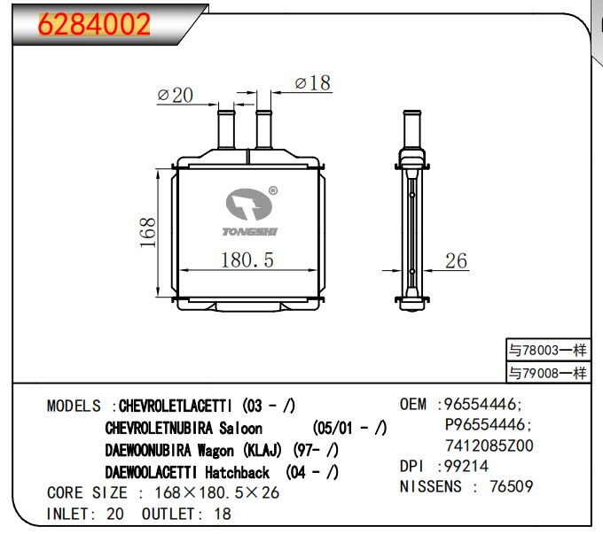 適用于奇瑞瑞虎(新款) MT散熱器 OEM : F1301000B1