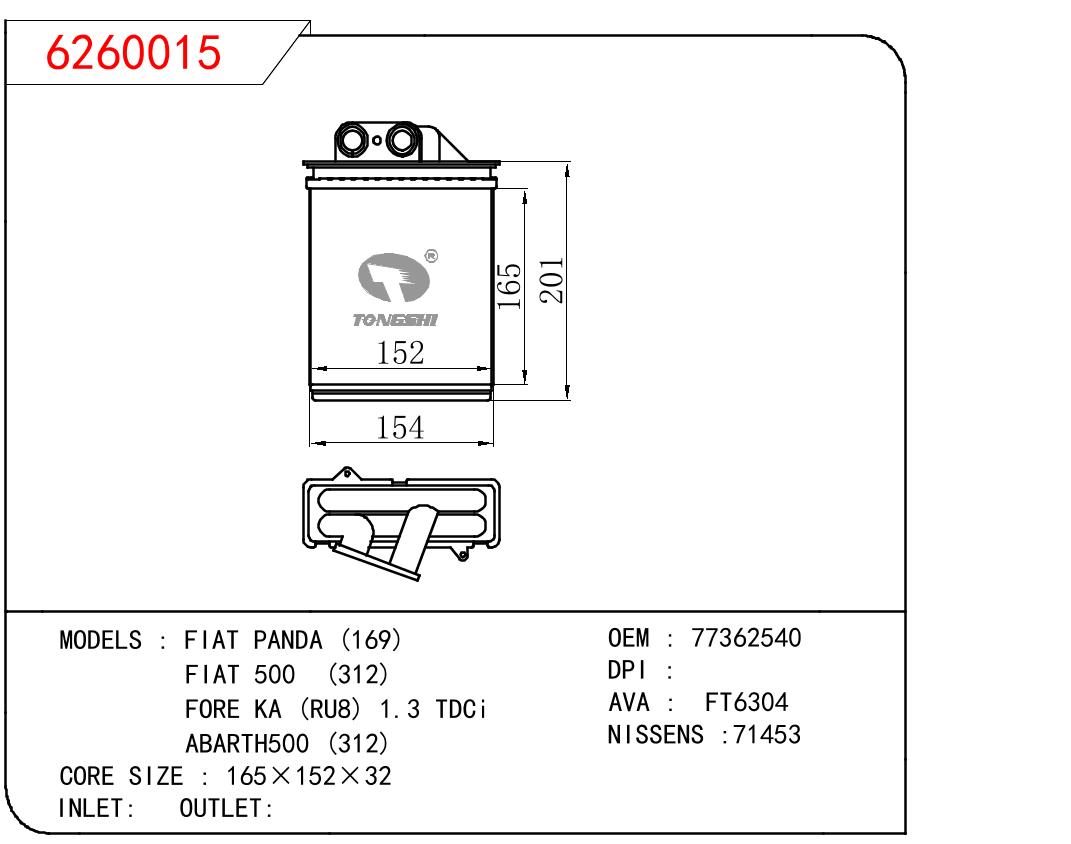 適用于奇瑞瑞虎(新款) MT散熱器 OEM : F1301000B1