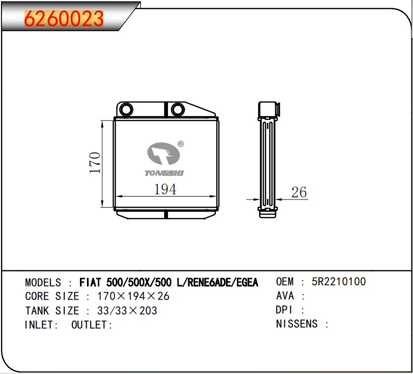 適用于奇瑞瑞虎(新款) MT散熱器 OEM : F1301000B1