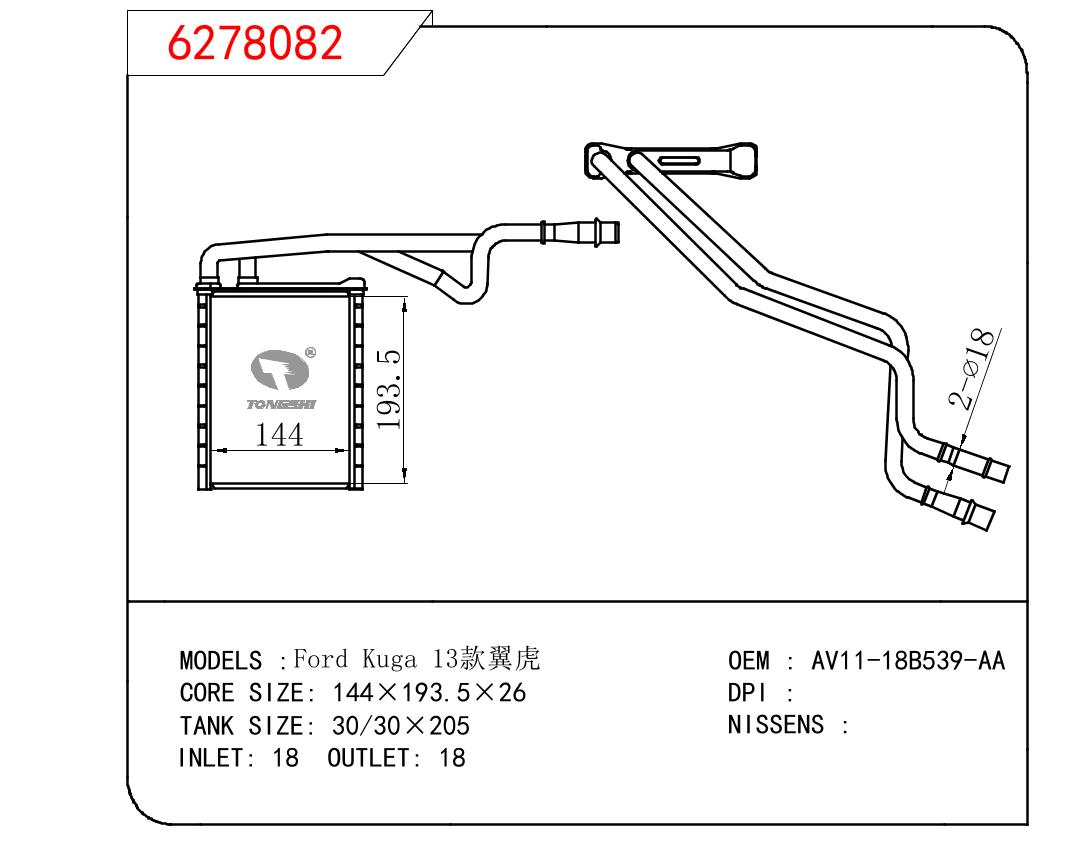 適用于奇瑞瑞虎(新款) MT散熱器 OEM : F1301000B1