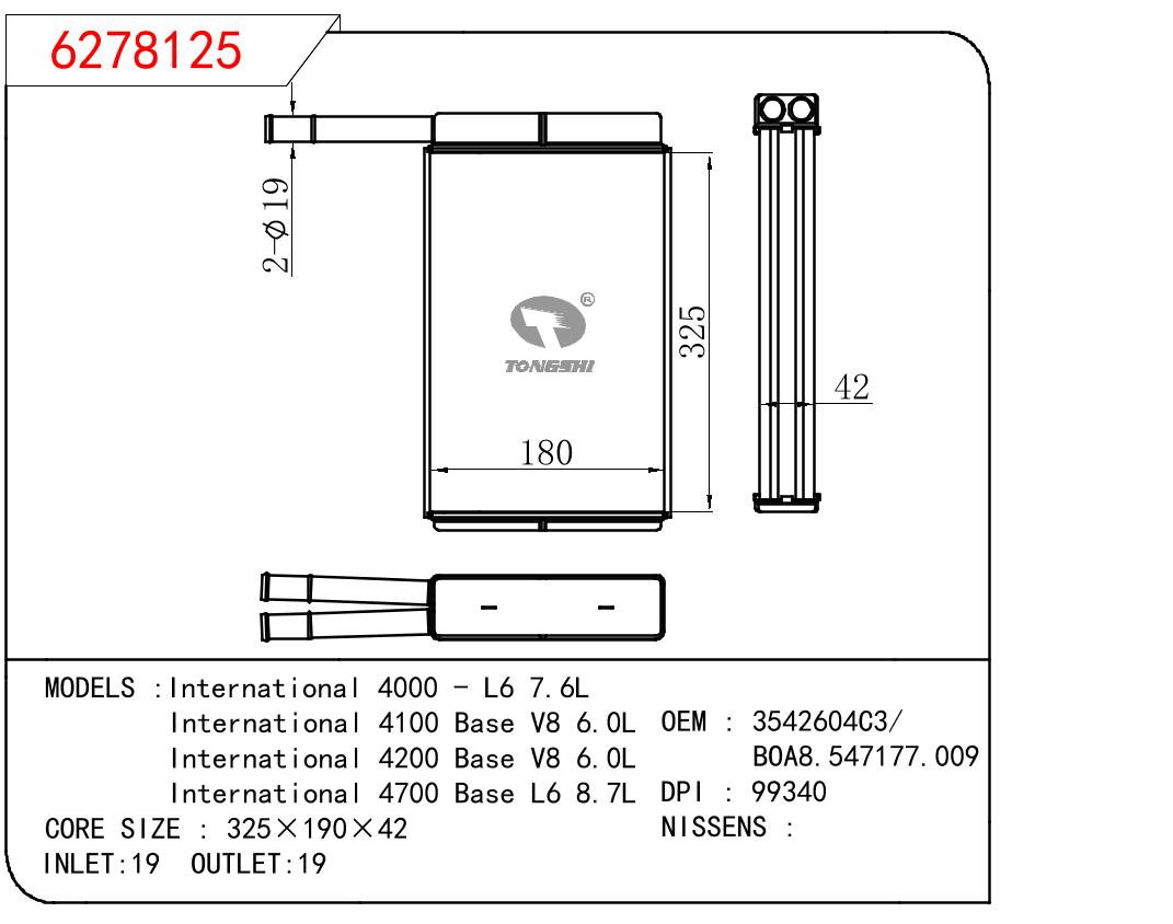 適用于FORD International 4000 - L6 7.6L/International 4100 Base V8 6.0L/International 4200 Base V8 6.0L/International 4700 Base L6 8.7L OEM:3542604C3/BOA8547177009