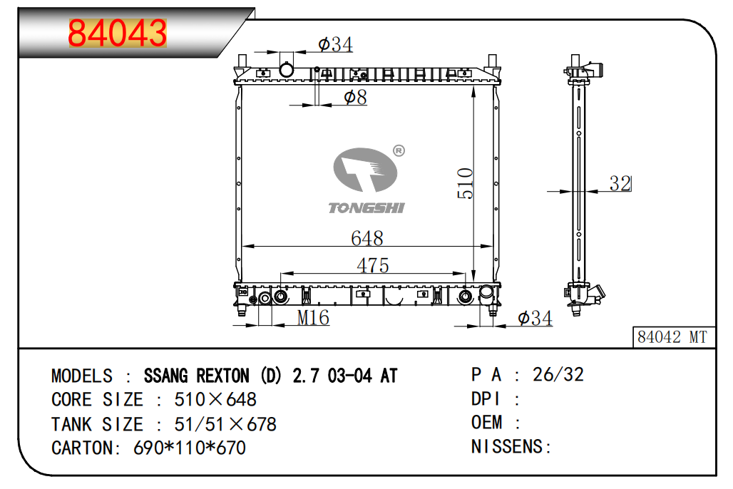 適用于寶馬 E30 320 i 82-93 AT散熱器OEM:1723 825/1719 261