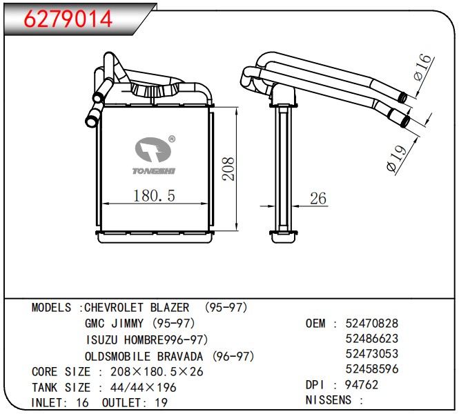 適用于奇瑞瑞虎(新款) MT散熱器 OEM : F1301000B1