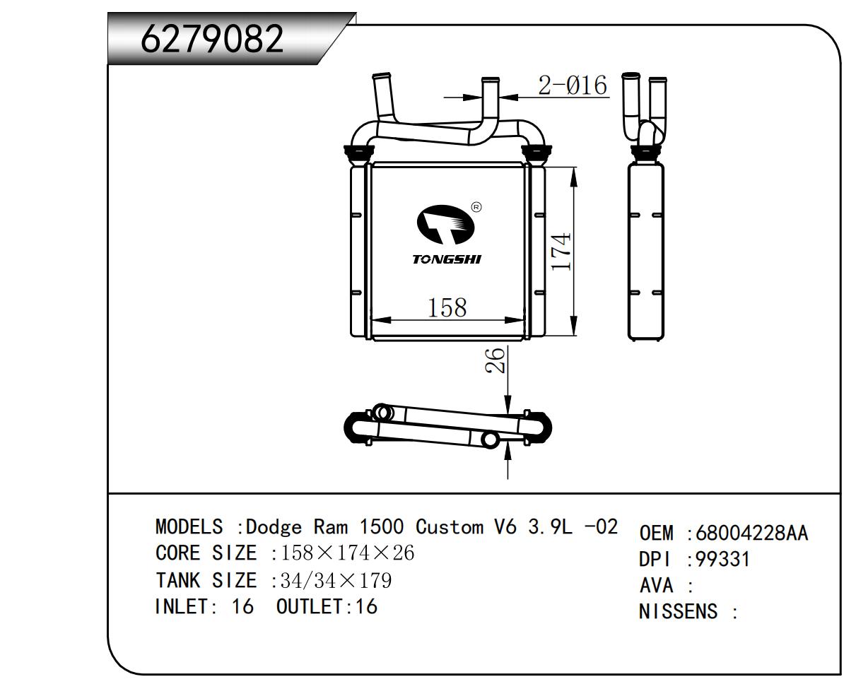 適用于奇瑞瑞虎(新款) MT散熱器 OEM : F1301000B1