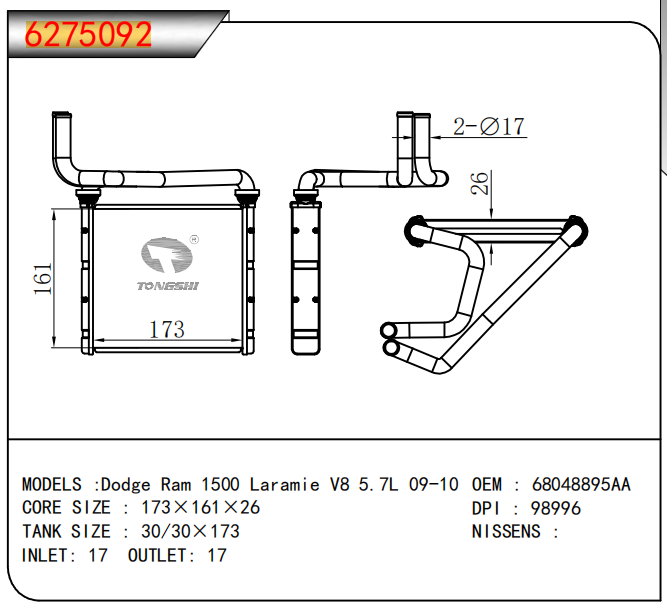 適用于奇瑞瑞虎(新款) MT散熱器 OEM : F1301000B1