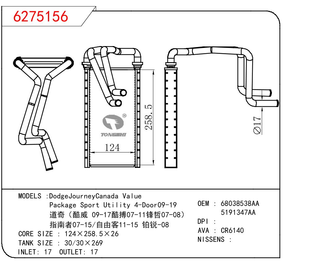 適用于GM?DODGE?DodgeJourneyCanada?Value/Package?Sport?Utility?4-Door09-19/道奇(酷威?09-17酷搏07-11鋒哲07-08)/指南者07-15/自由客11-15?鉑銳-08?OEM:68038538AA/5191347AA