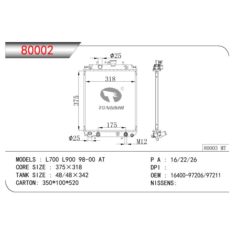 適用于奇瑞瑞虎(新款) MT散熱器 OEM : F1301000B1
