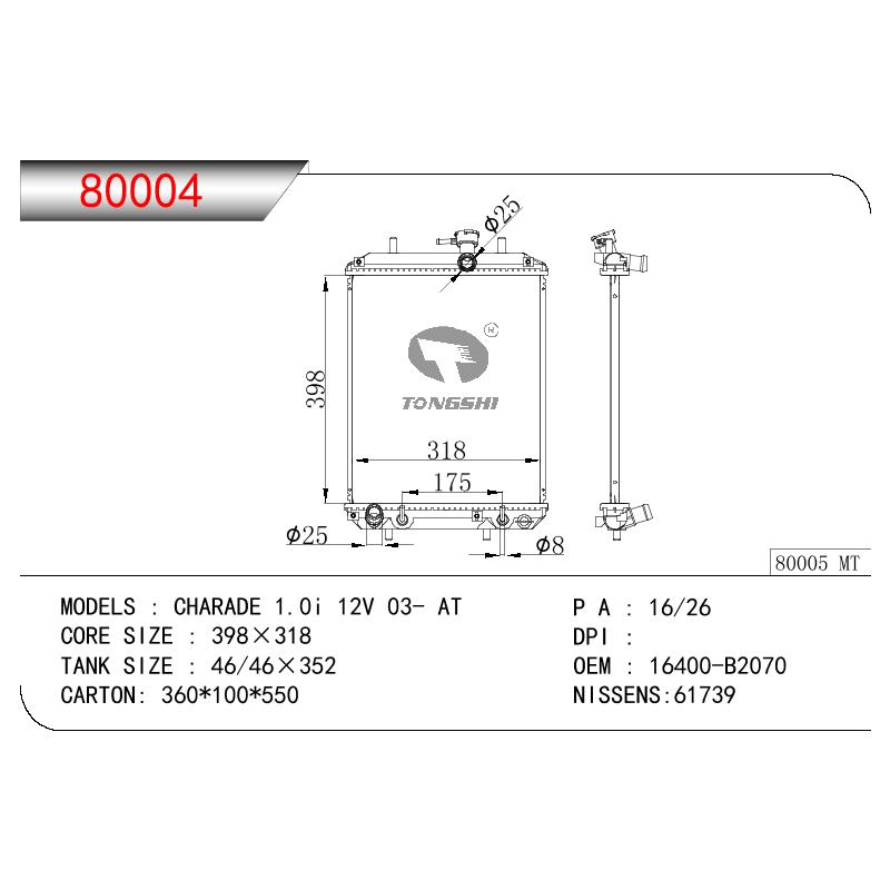 適用于奇瑞瑞虎(新款) MT散熱器 OEM : F1301000B1
