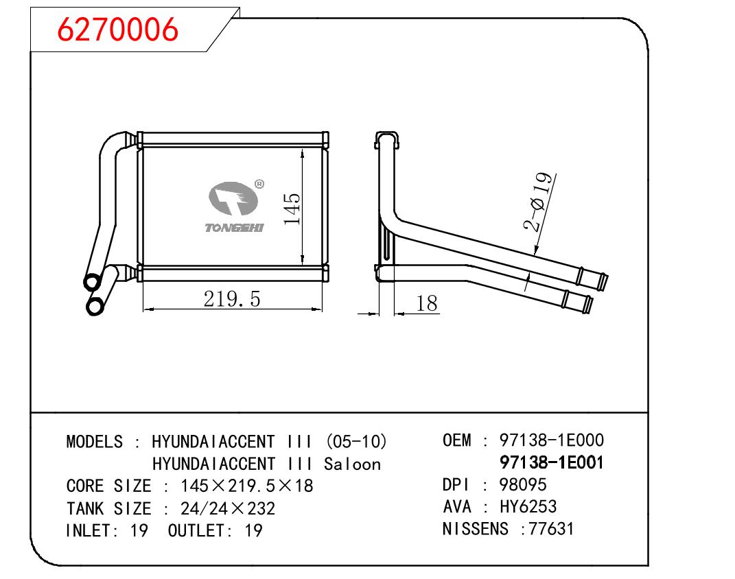 適用于奇瑞瑞虎(新款) MT散熱器 OEM : F1301000B1