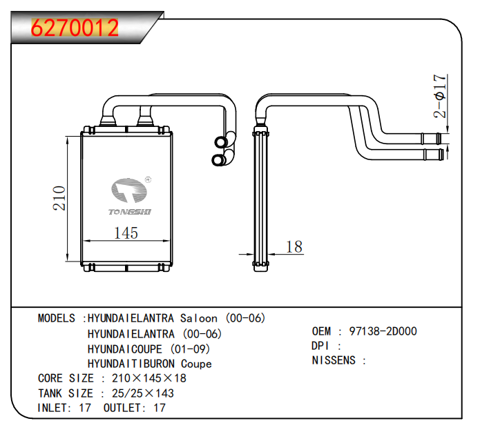 適用于寶馬 E30 320 i 82-93 AT散熱器OEM:1723 825/1719 261