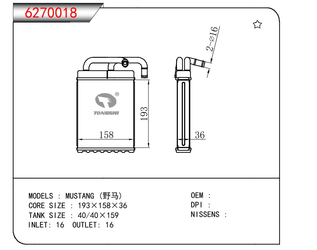 適用于奇瑞瑞虎(新款) MT散熱器 OEM : F1301000B1