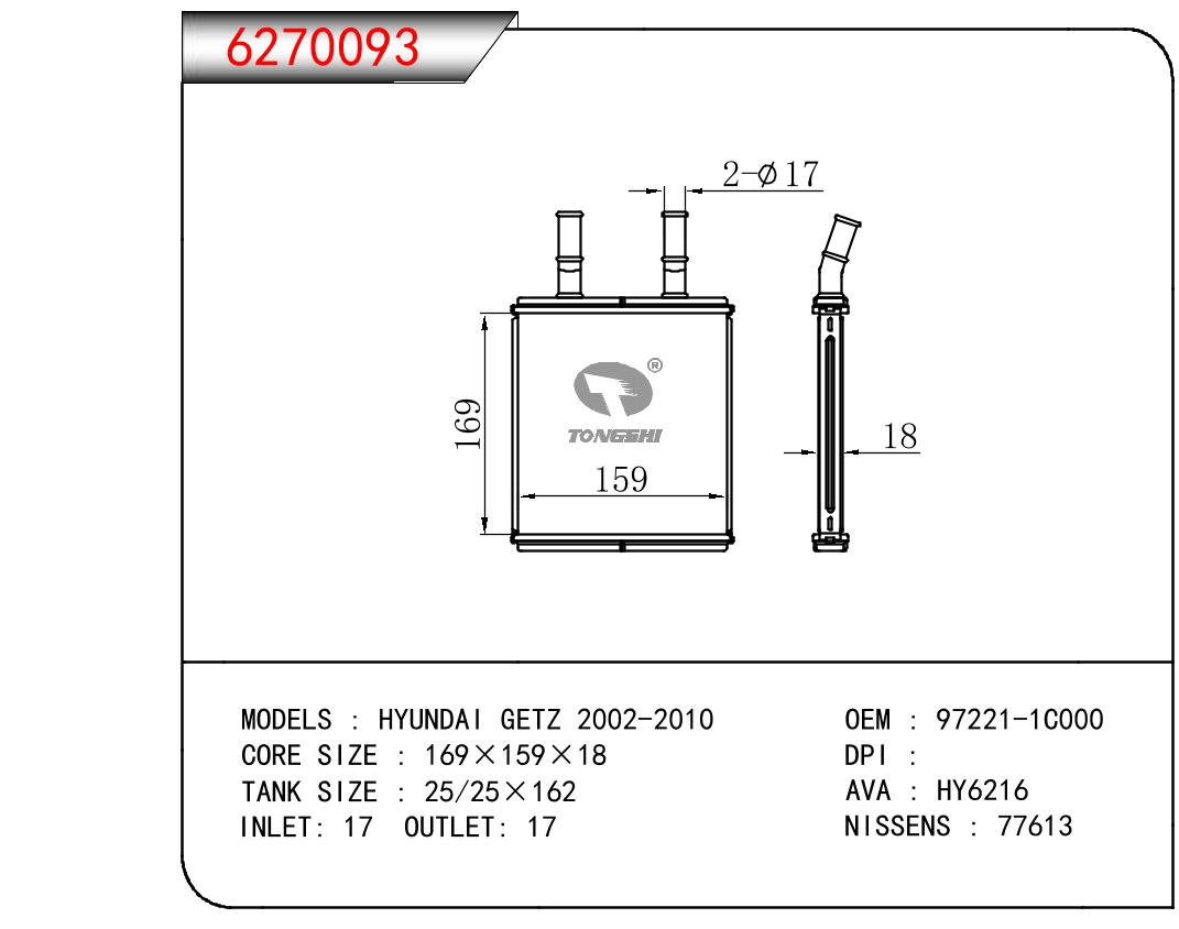 適用于奇瑞瑞虎(新款) MT散熱器 OEM : F1301000B1