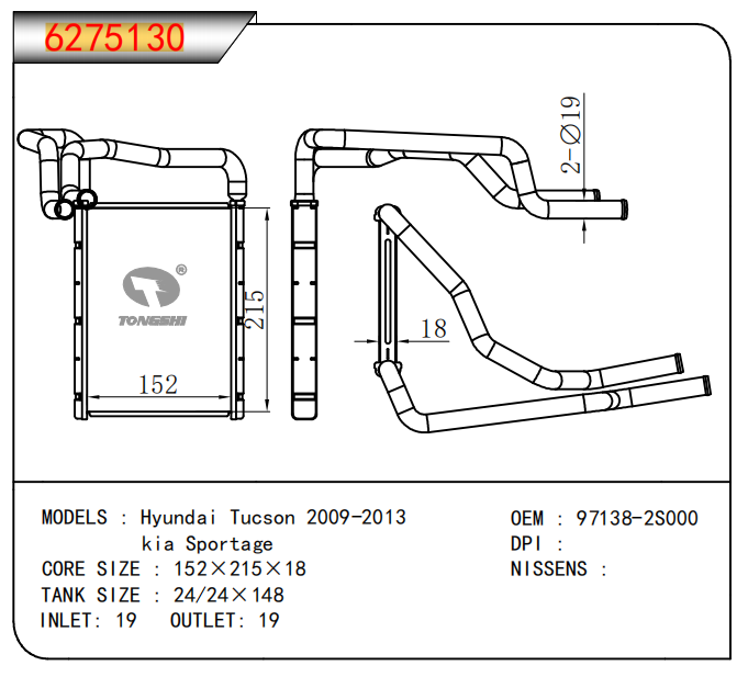 適用于奇瑞瑞虎(新款) MT散熱器 OEM : F1301000B1
