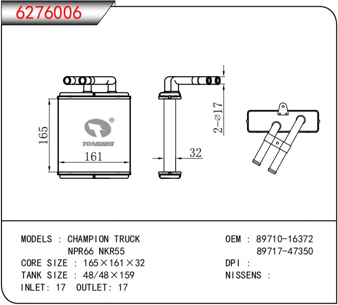 適用于奇瑞瑞虎(新款) MT散熱器 OEM : F1301000B1