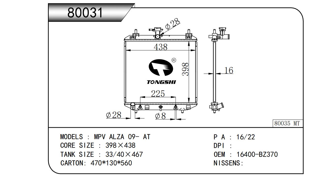 適用于寶馬 E30 320 i 82-93 AT散熱器OEM:1723 825/1719 261
