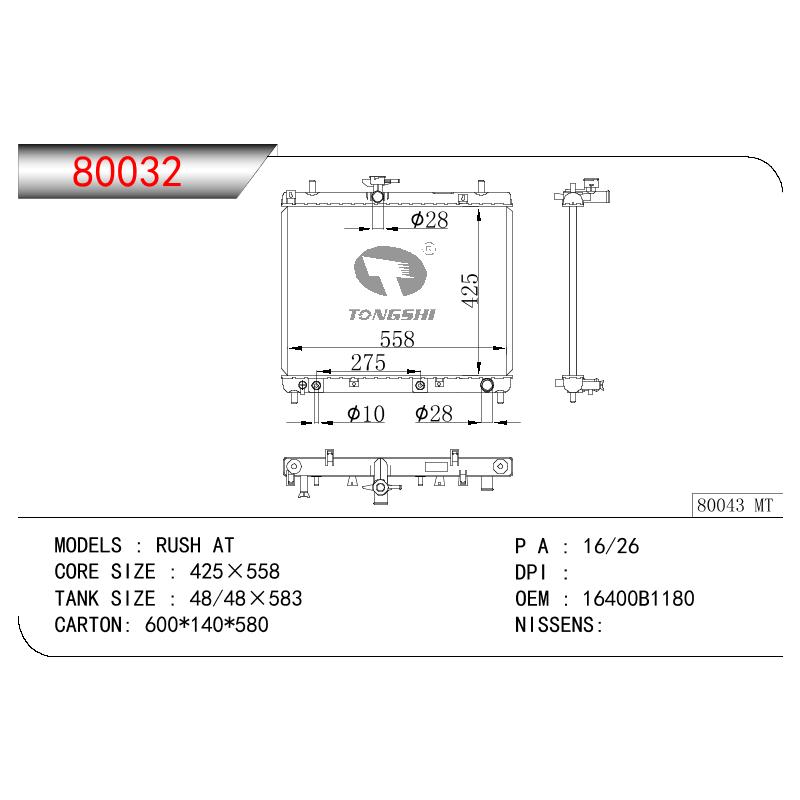 適用于奇瑞瑞虎(新款) MT散熱器 OEM : F1301000B1