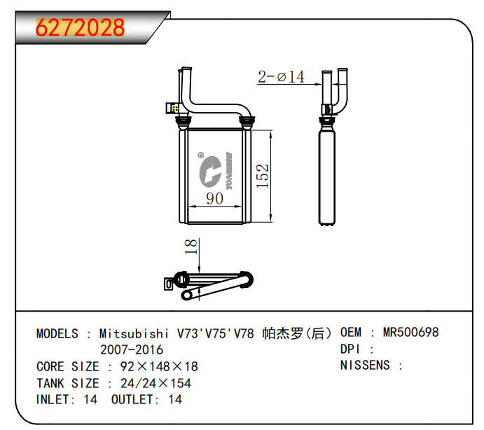 適用于奇瑞瑞虎(新款) MT散熱器 OEM : F1301000B1